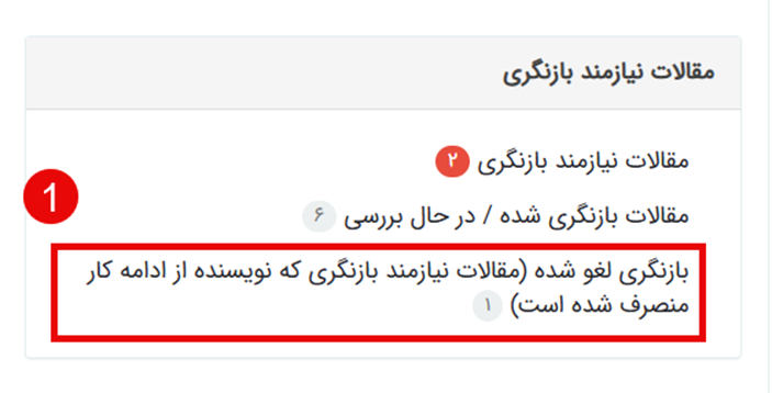 میتوانید انصراف خود را اعلام کنید. این مقالات در بخش "بازنگری لغو شده" در منوی "نویسنده" قابل مشاهده هستند.