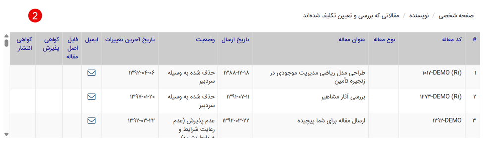 مقالاتی که سردبیر درخواست ارسال مجدد آنها را...