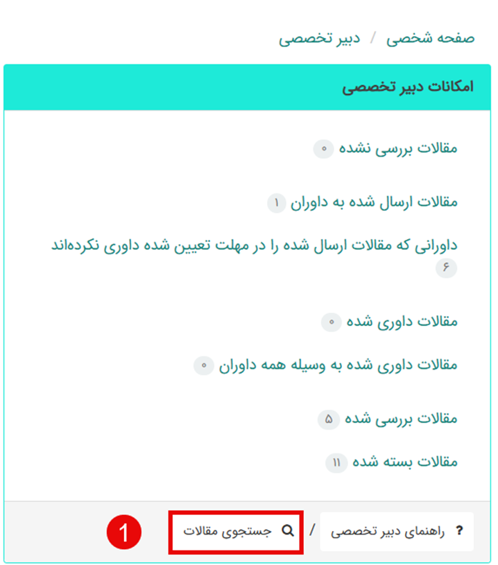 در پنل کاربری خود، از گزینه "جستجوی مقالات" استفاده کنید.