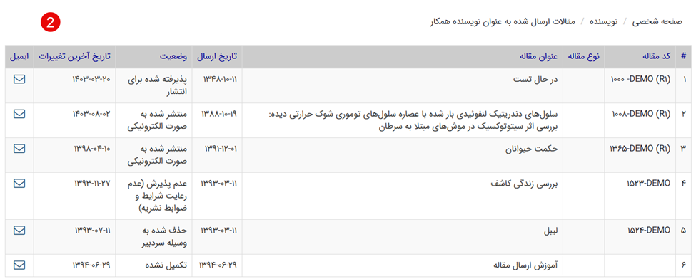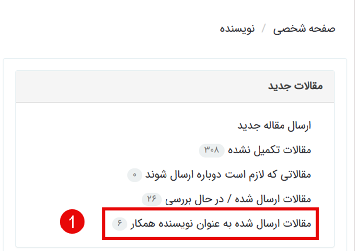 از نقش "نویسنده"، گزینه "مقالات ارسال شده به عنوان نویسنده همکار" را انتخاب کنید.