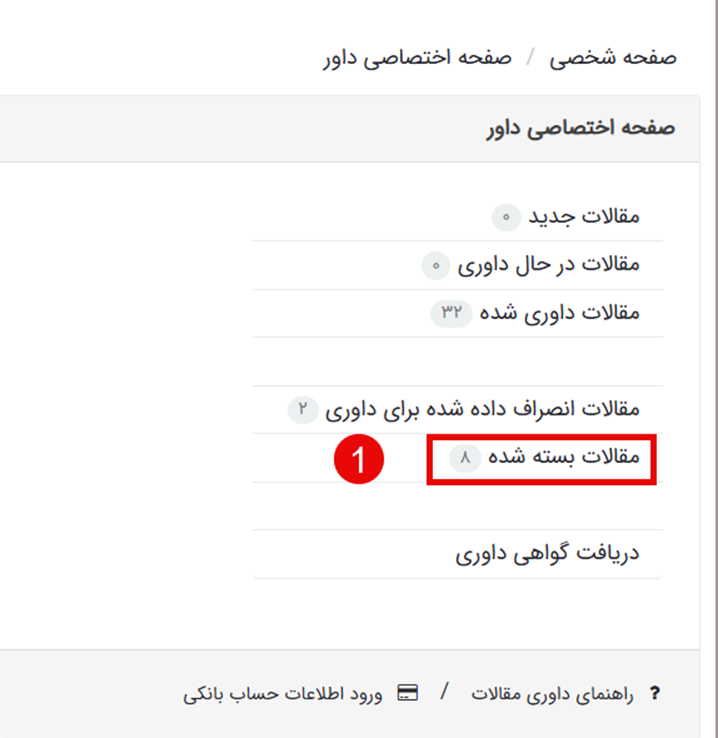 از منوی "داور"، گزینه "مقالات بسته شده" را انتخاب کنید.