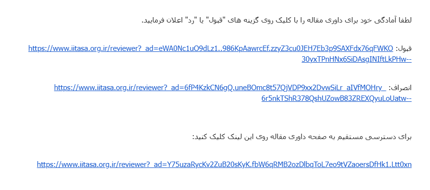 - شما فقط میتوانید وضعیت مقاله و پاسخ قبلی خود (قبول یا رد اولیه) را مشاهده کنید.