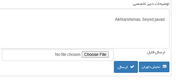 همچنین میتوانید فایلهای لازم، برای مثال فایل مقالهای را که بر روی آن کامنت گذاشتهاید، نیز برای سردبیر ارسال کنید. در نهایت باید بر روی ارسال کلیک کنید تا مقاله به دست سردبیر برسد.