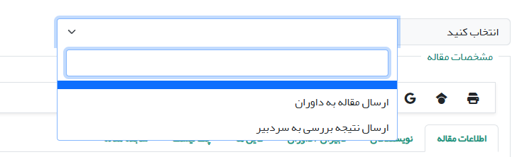 ارسال مقاله به داوران: با کلیک بر روی ارسال مقاله به داوران، فرم ارسال به داوری باز میشود.