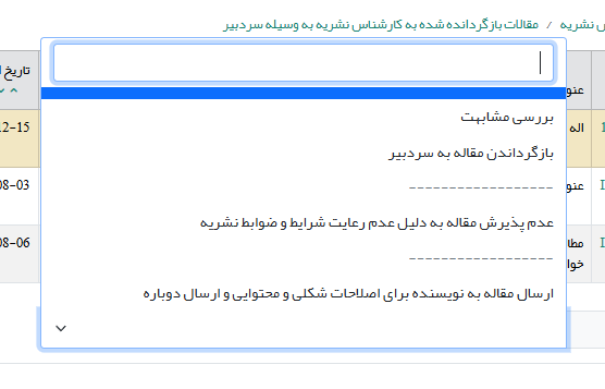 کارشناس نشریه: مقالات بازگردانده شده به کارشناس نشریه به وسیله سردبیر