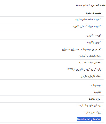 - از منوی اصلی گزینه "بانک ها و نمایه نامه ها" را انتخاب کنید.