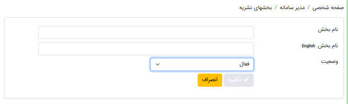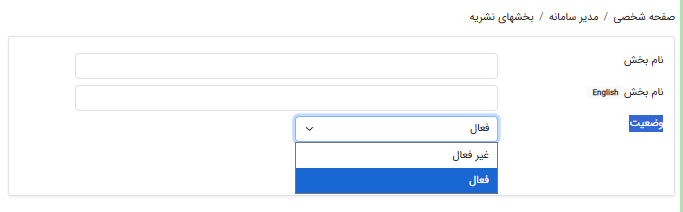 نام بخش را به فارسی و انگلیسی وارد کنید.