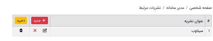 اگر از قبل نشریهای ثبت شده باشد، با کلیک روی علامتهای قلم یا ضربدر میتوانید آنها را ویرایش یا حذف کنید. با نگه داشتن ماوس روی فلش نیز میتوانید ترتیب نشریههای ثبتشده را تغییر دهید.