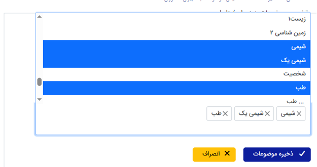 - تخصصهای مربوطه را از لیست موضوعات انتخاب کنید.