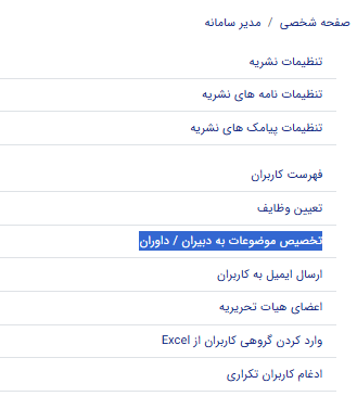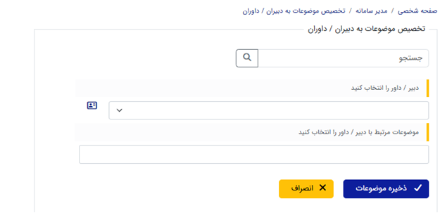 مدیر سامانه: تخصیص موضوعات به دبیران/ داوران