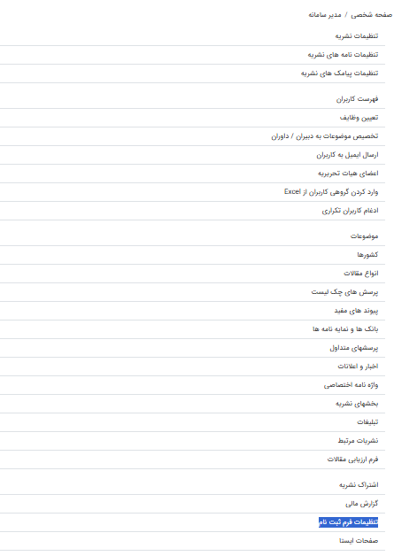 مدیر سامانه: تنظیمات فرم ثبت نام