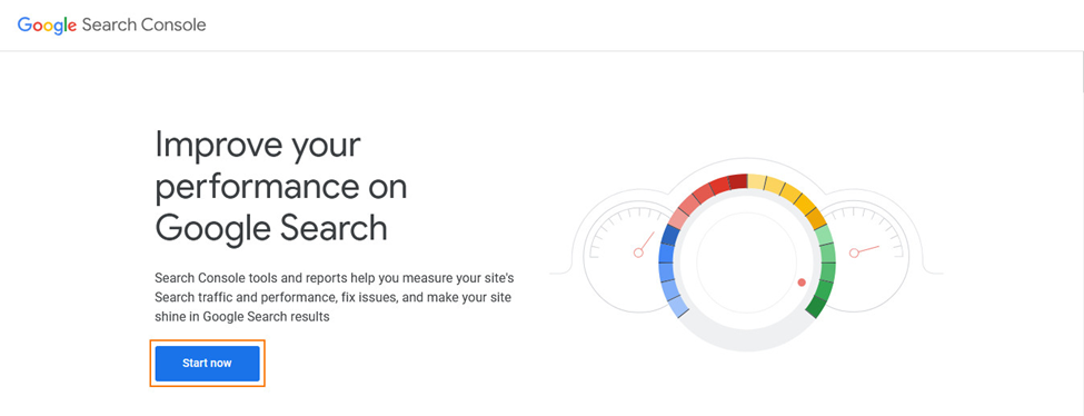 به سایت Google Search Console بروید. و روی دکمه "Start Now" کلیک کنید.