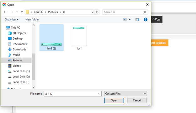 5ـ سپس فایل موردنظر را از روی سیستم خود انتخاب کنید. دقت کنید نام فایل انگلیسی باشد.