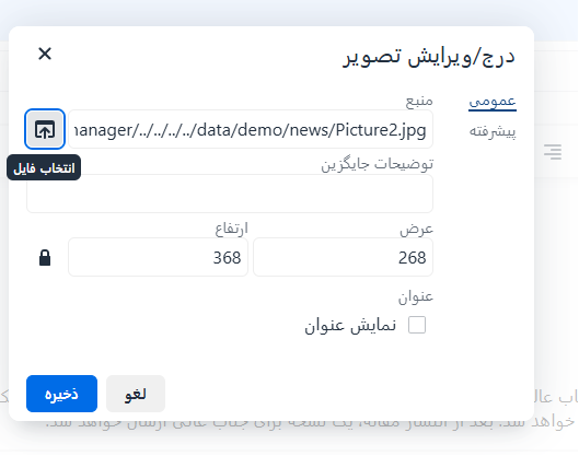 ممکن است در این بخشها بخواهید تصویری را در سامانه بارگذاری کنید. راهنمای بارگذاری تصویر به شرح زیر است: