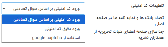 - تنظیمات کد امنیتی برای فرمهای مختلف