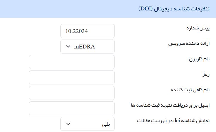 مدیر سامانه: تنظیمات نشریه: تنظیمات بیشتر: تنظیمات شناسه دیجیتال (DOI)