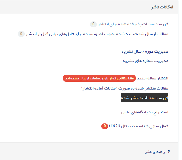 در پنل ناشر بر روی فهرست مقالات منتشرشده کلیک کنید.