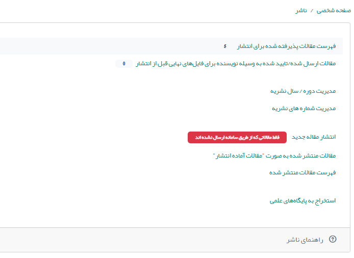 در صورتی که بخواهید این مقاله را منتشر کنید، ناشر میتواند بر روی علامت انتشار در انتهای ردیف مقاله کلیک کند و آن را منتشر کند.