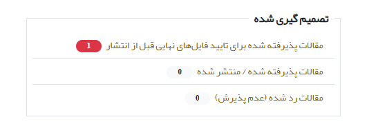 1. به بخش «مقالات پذیرفته شده برای تایید فایلهای نهایی قبل از انتشار» بروید.