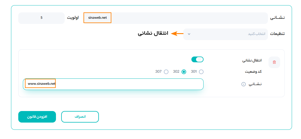 10. فرم را به صورت زیر تکمیل کنید. به جای sinaweb.net آدرس نشریه خود را وارد کنید.