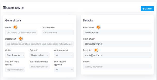 2.     توضیح کوتاهی درباره لیست وارد کنید.