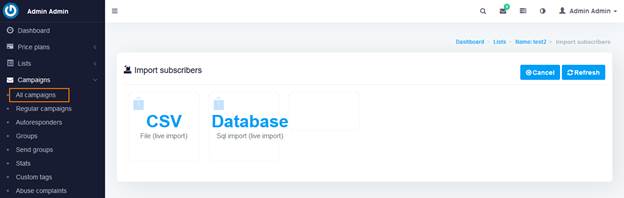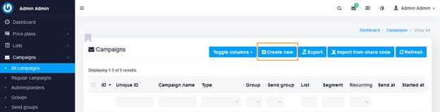 مرحله دوم - ارسال ایمیل: روی گزینه Campaigns و سپس All campaigns کلیک کنید.