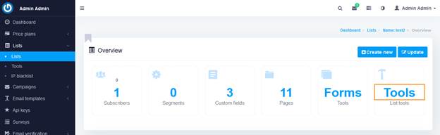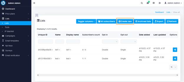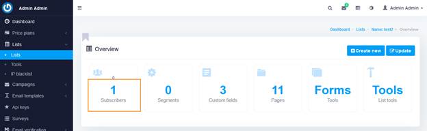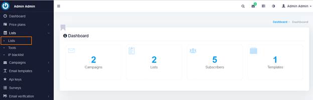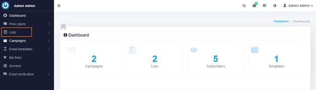 در این سیستم می‌توانید لیست های مجزایی از دریافت‌کنندگان ایمیل ایجاد کنید. پس از ورود با استفاده از نام کاربری و رمز عبوری که در اختیار شما قرار داده شده است. ابتدا روی منوی لیست کلیک کنید.