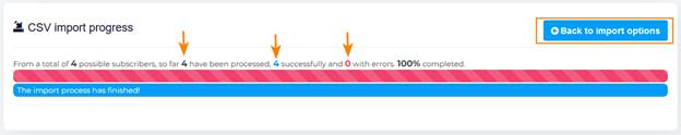 در نهایت به شما نشان می‌دهد که از لیست شما چند ایمیل را وارد سیستم کرده است و چند ایمیل وارد نشده است. گاهی ممکن است به علت اشکال در بعضی ایمیل ها این کار به صورت کامل انجام نشود.