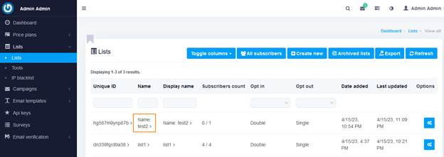 روی نام لیست کلیک کنید.