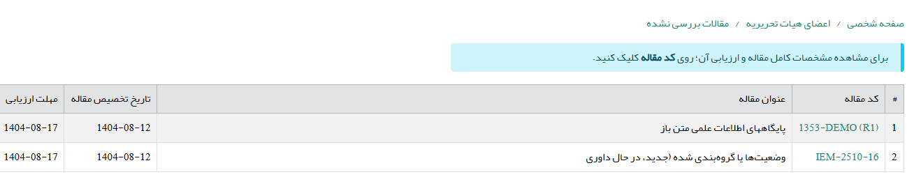 1ـ عضو هیأت تحریریه هستم. چگونه میتوانم مقالات ارسال شده برای بررسی توسط من را مشاهده کنم؟