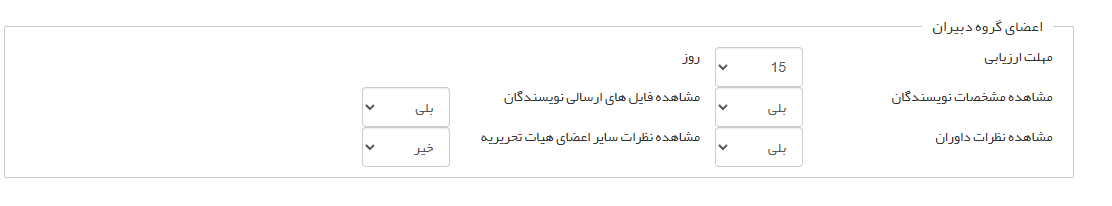 پاسخ: این امکان بستگی به تنظیماتی دارد که مدیر سامانه در بخش تنظیمات نشریه، تنظیمات بیشتر، داوران/ دبیران و در قسمت اعضای گروه دبیران انجام میدهد.