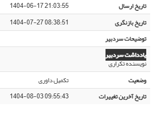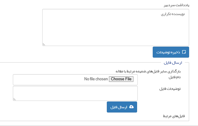 چناچه یادداشتی برای یک مقاله ثبت شود، این یادداشت در تب سابقه مقاله و همچنین در پایین صفحه اطلاعات مقاله قابل مشاهده خواهد بود.