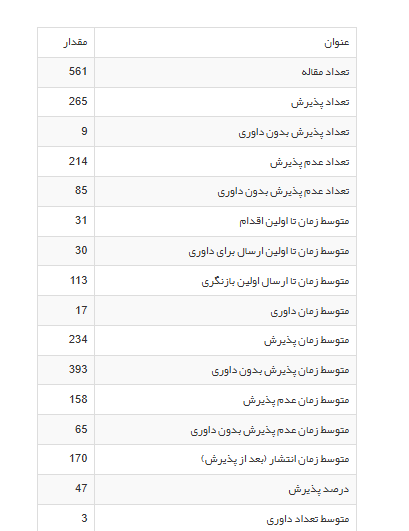 3ـ کدام گزارش برای تحلیل روند سالانه تعداد مقالات دریافتی و سرعت فرآیند داوری مفیدتر است؟
