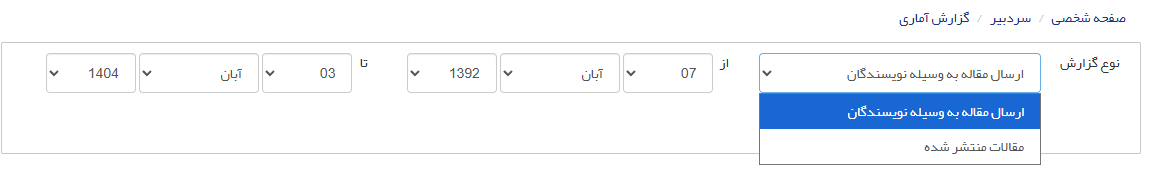 یکی از امکانات نقش سردبیر تهیه گزارش آماری است. ابتدا لازم است روی «گزارش آماری» در انتهای صفحه سردبیر کلیک کنید.