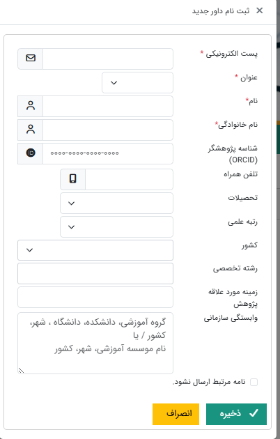 3. گزینه ثبت نام داور جدید هنگام ارسال مقاله به داور