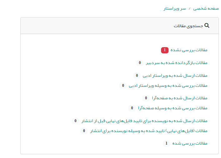 1ـ سرویراستار چگونه میتواند مقالات جدید ارسال شده از سردبیر را پیدا و بررسی کند؟